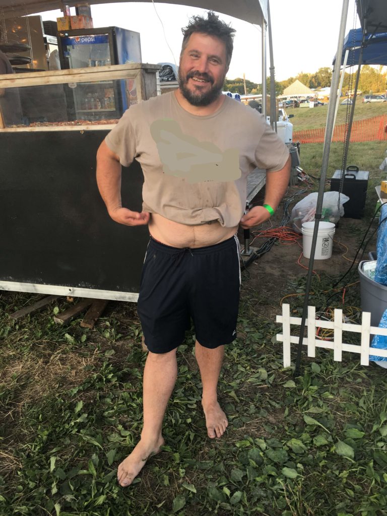 I don’t have tons of pictures from this time period because fat people don’t like to be photographed. But there are always fish pics. On June 28th I caught a beautiful bass and my brother snapped the obligatory fish pic. And there behind the fish is my spare tire in all of its glory, after 6 months of keto, intermittent fasting and red wine.
